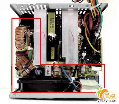尽管劣质电源总是在千方百计地在原材料上缩水,以期达到节省成本的目的,但电源内就这么大空间,省来省去,依旧主要是在EMI、PFC电路以及原材料上缩水,因为这都是占电源成本比重比较大的元器件。有了这样的指导思想,我们在选购电源的时候就能做到有的放矢,知道该往哪个方向去掂量你手上待购的电源了。